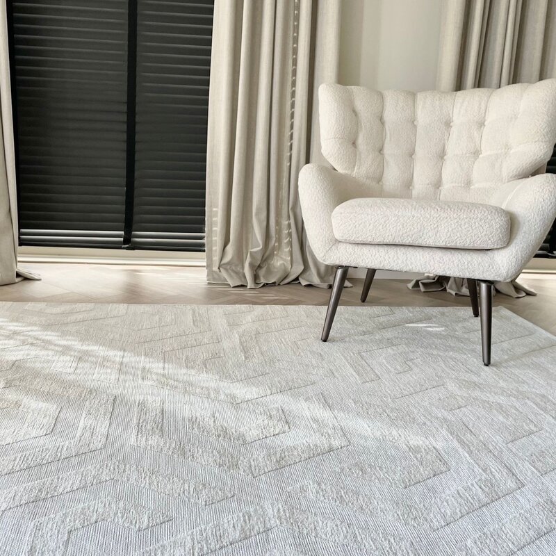 Elegant, zeitlos und robust - so lässt sich der Teppich Bel Air am besten beschreiben. Seine Hauptfarbe ist Weiß. Aufgrund des verspielten, geometrischen Charakters dieses weißen Teppichs findet sich der Effekt in mehreren wenigen.