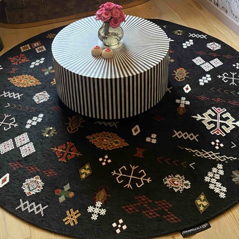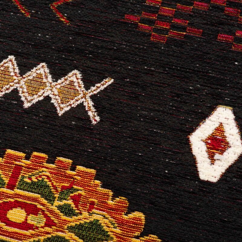 Holen Sie sich Südamerika in Ihr Zuhause mit diesem lebendigen und coolen Teppich von Fred! Die Kombination aus einem schwarzen Hintergrund und verschiedenfarbigen Motiven schafft einen warmen Kontrast und einen coolen Look. Der Teppich eignet sich perfekt für jeden Wohnbereich und passt zu vielen verschiedenen Einrichtungsstilen wie Bohème, Ethno und Vintage. Verleihen Sie Ihrem Interieur einen zusätzlichen Kick!