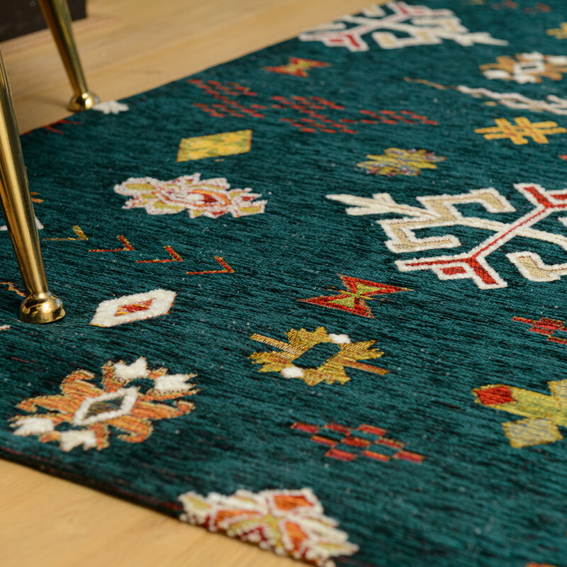 Holen Sie sich Südamerika in Ihr Zuhause mit diesem lebendigen und coolen Teppich von Fred! Die Kombination aus einem stilvollen smaragdgrünen Hintergrund und verschiedenfarbigen Motiven schafft einen warmen Kontrast und gleichzeitig einen coolen Look. Mit diesem Teppich von Fred holen Sie sich einen echten Blickfang in Ihr Zuhause. Der Kilim-Teppich ist perfekt für jeden Wohnbereich und passt zu vielen verschiedenen Einrichtungsstilen wie Bohemian, Ethnic und Vintage. Geben Sie Ihrem Interieur einen zusätzlichen Kick!