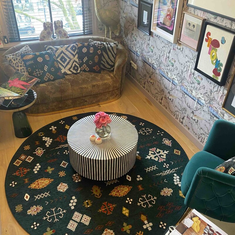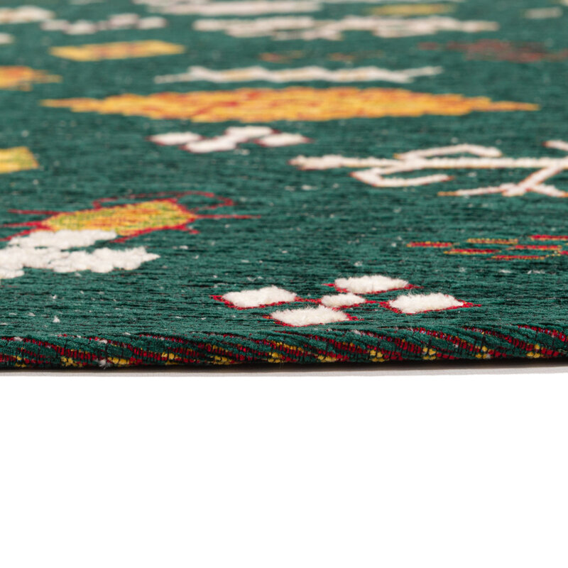 Holen Sie sich Südamerika in Ihr Zuhause mit diesem lebendigen und coolen Teppich von Fred! Die Kombination aus einem stilvollen smaragdgrünen Hintergrund und verschiedenfarbigen Motiven schafft einen warmen Kontrast und gleichzeitig einen coolen Look. Dieser Teppich von Fred ist ein echter Blickfang in Ihrem Zuhause. Der Teppich ist perfekt für jeden Wohnraum und passt zu vielen verschiedenen Einrichtungsstilen wie Bohemian, Ethnic und Vintage. Verleihen Sie Ihrem Interieur eine besondere Note!