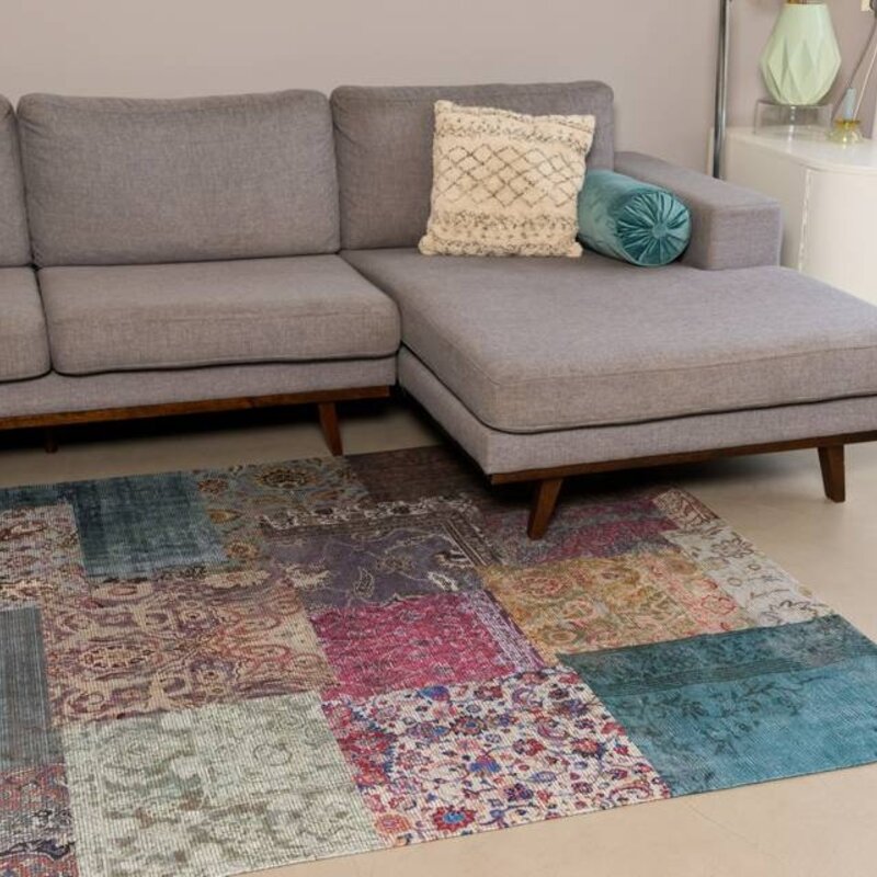 Teppich Flint wirkt wie ein traditioneller Vintage-Teppich, aber ohne deren Nachteile. Traditionelle Vintage-Teppiche sind oft alte Teppiche, die bereits beschädigt sein können und auch deutlich leichter kaputt gehen. Die Jacquard-Webtechnik und die Produktzusammensetzung von Teppich Flint sorgen dafür, dass dieser Patchwork Teppich sehr robust, haltbar und pflegeleicht ist.