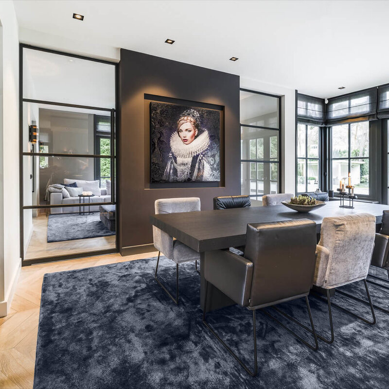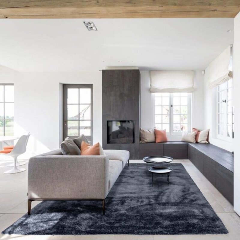 Hochflor Teppich Sandro 24 ist die dunkelste Variante dieser Kollektion. Dieser blaue Teppich hat eine schöne Basis in Anthrazit mit einen wunderschönen dunkelblauen Glanz darüber. Damit ist Sandro 24 absolut kein einfacher schwarz- bzw. anthrazitfarbener Teppich. Die Farbe Anthrazit ist längst nicht mehr eine langweilige und düstere Farbe und wird heute sehr viel eingesetzt um Kontraste zu schaffen. Sandro 24 kann daher am besten als moderner Teppich definiert werden, der eine wertvolle Ergänzung für jedes Interieur darstellt.