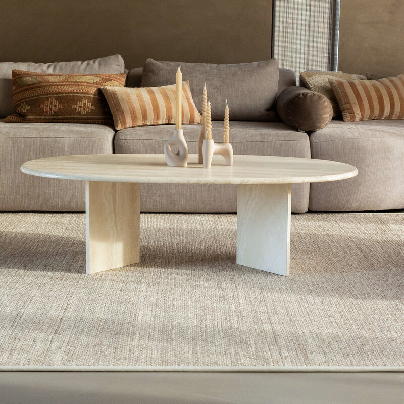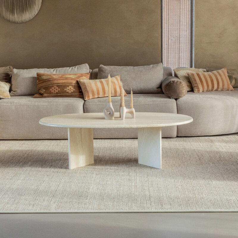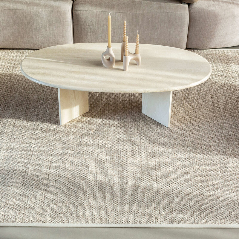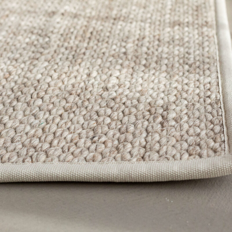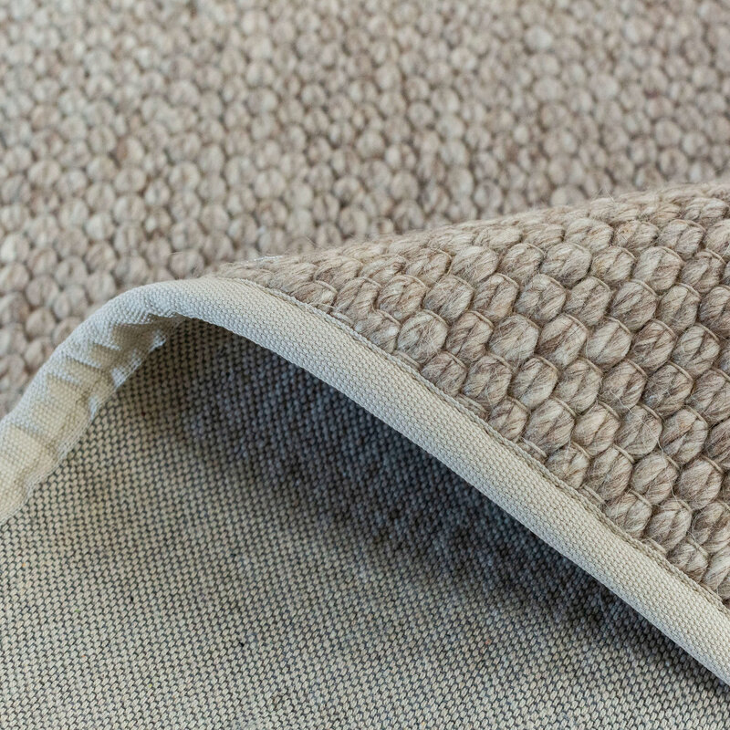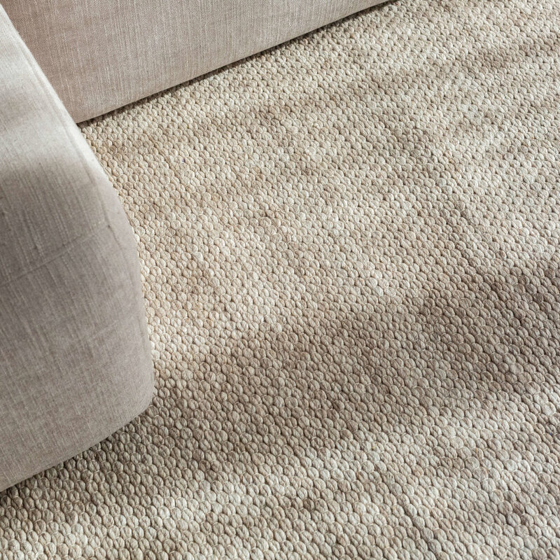Dieser wunderschöne moderne Webteppich ist einer unserer modernen Wollteppiche in der Kollektion. Dieser Teppich in Beige ist aus Garn höchster Qualität gewebt, das zu 60 % aus Wolle und zu 40 % aus Viskose besteht. Dadurch erhält er den Charme und die Vorzüge eines Wollteppichs und ist durch die Beimischung unterschiedlicher Garne noch pflegeleichter und verschleißfester. Wolle hat außerdem isolierende Eigenschaften, sodass sie sich sowohl bei kaltem als auch bei warmem Wetter gut anfühlt.