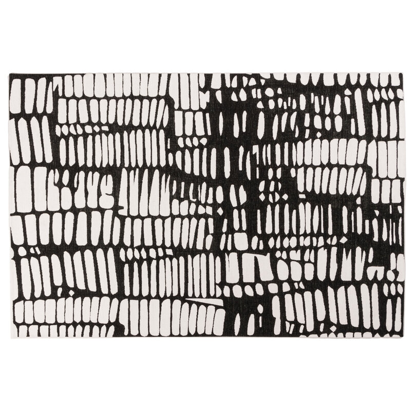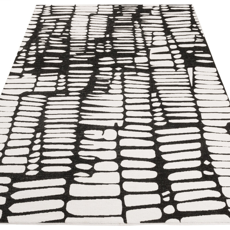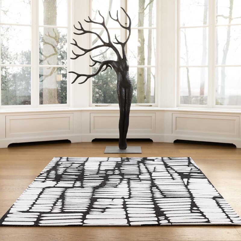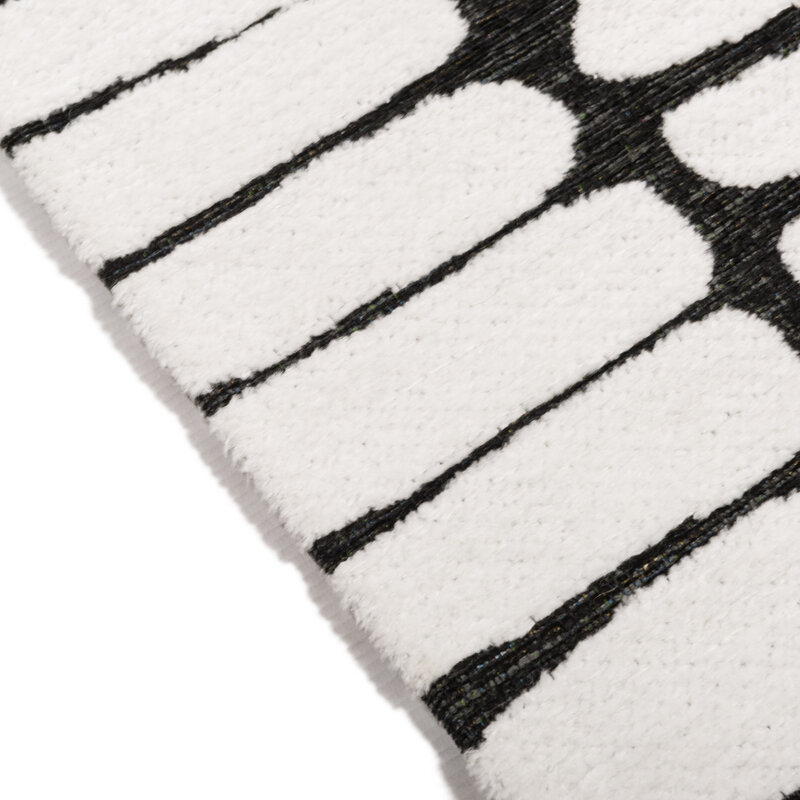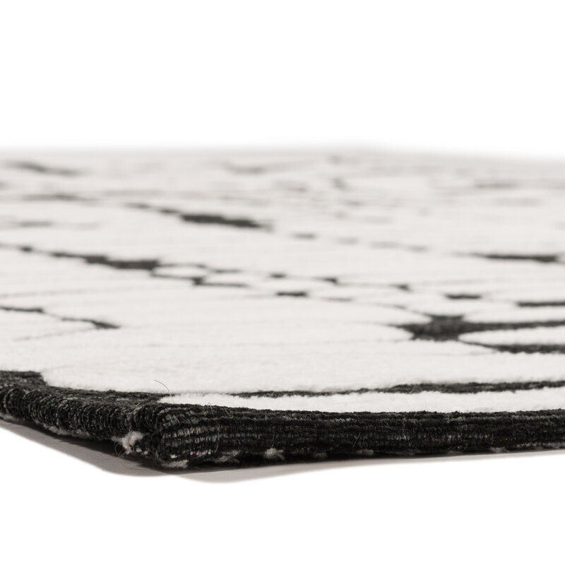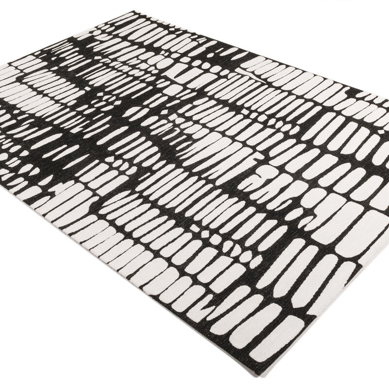 Der Teppich IXCS ist einer unserer hochwertigsten Teppiche. Er ist aus strapazierfähigem Mischgarn gefertigt. Er zeichnet sich durch die Stärke des Garns und die natürliche Färbung aus. Die Florhöhe des Garns beträgt etwa 0,8 cm. Durch die dichte Webung entsteht ein Teppich mit einem vollen und reichen Charakter. Beim Kauf dieses schwarz-weißen Teppichs erhalten Sie eine Standard-Herstellergarantie von 2 Jahren.