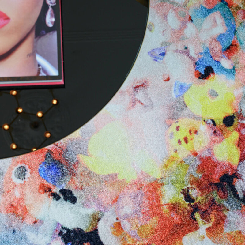 Dieser runde Teppich ist eine wahre Farbexplosion. Die intensiven, lebendigen Farben, vor allem Pink, kombiniert mit Lila, Gelb, Blau, Grün, Rot und Schwarz auf weißem Grund, machen ihn zu einem echten Blickfang in jedem Interieur. Dank der niedrigen Florhöhe spritzt das Design förmlich aus dem Teppich. Inspirationsquelle sind die farbenfrohen Kunstwerke des weltweit bekannten Künstlers Bram Reijnders.