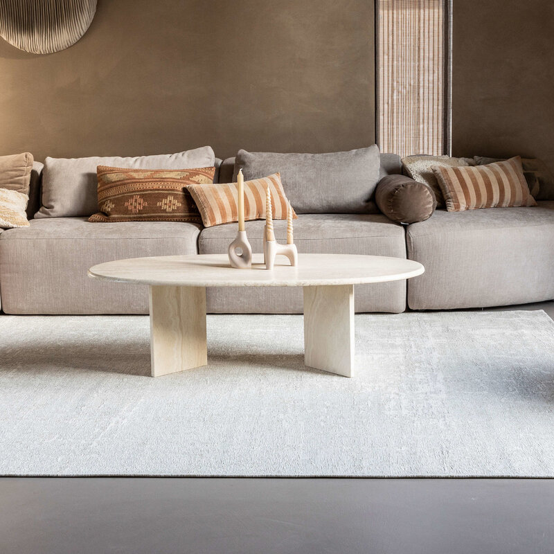 Der Prosper 21 - Cyprus White besteht aus hochwertigem Garn, in dem taupefarbene Töne mit hellem Grau gemischt sind. Die Garnzusammensetzung des Teppichs besteht aus 33% Baumwolle, 33% Polyester und 34% Chenille. Durch die Verwendung von Chenillegarn entsteht ein schönes Relief im Teppich. Der Zusatz von Polyester trägt zu einem langlebigen und strapazierfähigen Teppich bei, an dem Sie jahrelang Freude haben werden.
