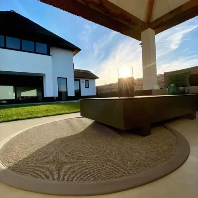 Auf der Suche nach einem runden Sisalteppich, der für den Außenbereich geeignet ist? Dann ist der Outdoor-Teppich Sisal genau das Richtige für Sie. Dieser Teppich liegt voll im Trend. Es ist ein schöner Outdoor-Teppich im Landhausstil. Der Teppich besteht aus 100 % Polypropylen und ist somit ein idealer Outdoor-Teppich. Polypropylen hat die Eigenschaften, dass es ein unverwüstliches synthetisches Garn ist, das feuchtigkeitsbeständig ist und UV-Strahlen widerstehen kann.