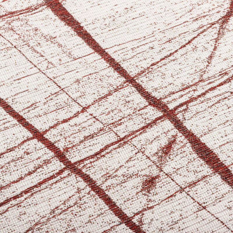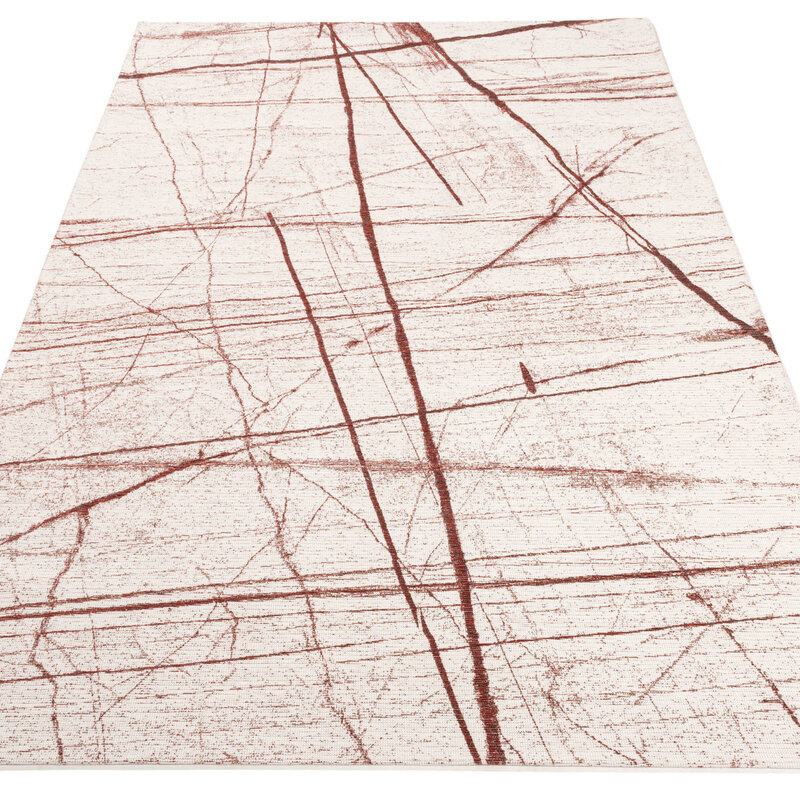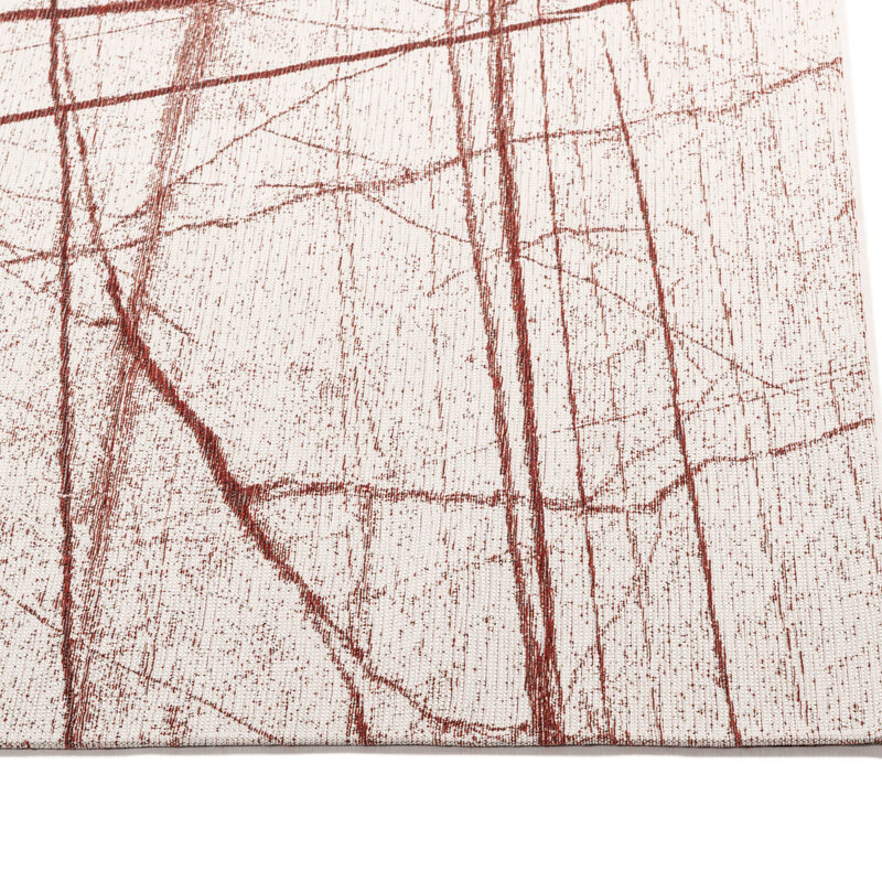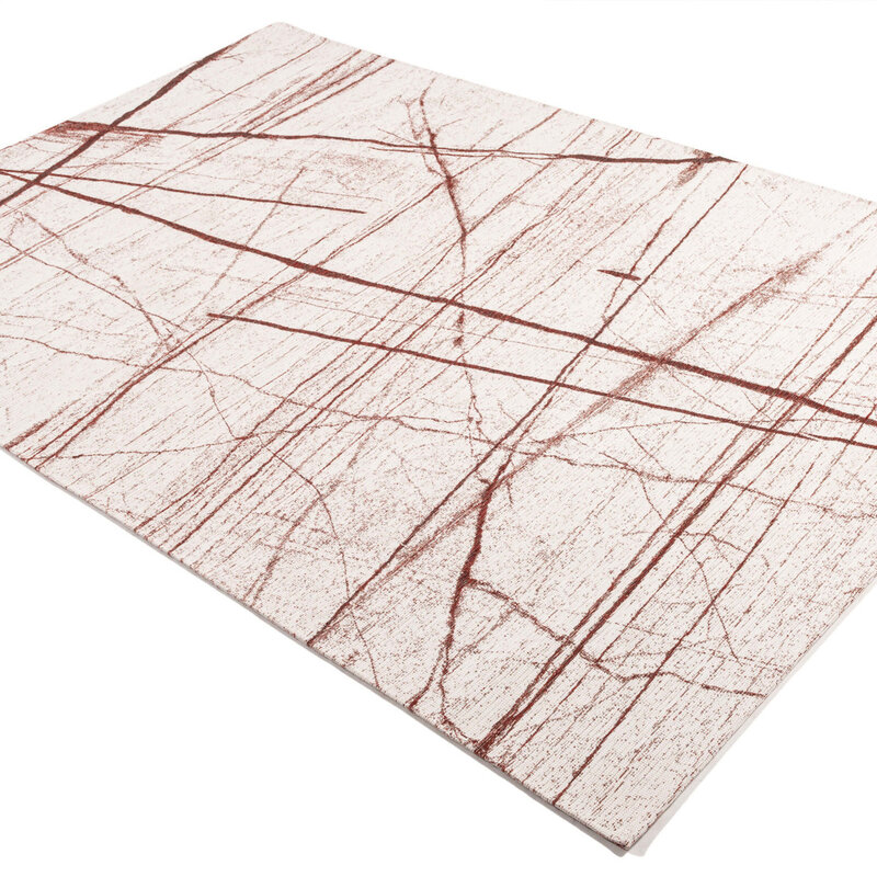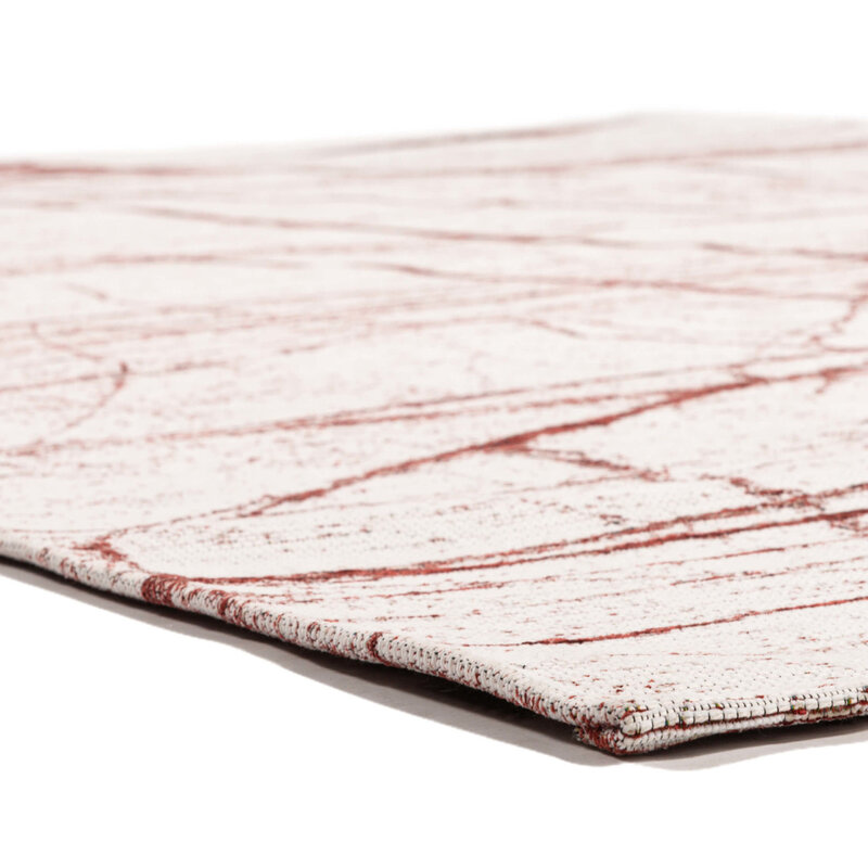 Der Teppich Sal Mundi hat ein modernes Design mit abstrakten Linien in Rot mit hellem Hintergrund. Hergestellt in der Jacquard-Webtechnik, besteht Sal Mundi aus einer Mischung aus natürlichen und synthetischen Garnen. Das Baumwollgarn sorgt für ein natürliches Aussehen und eine schöne Farbechtheit. Das Polyestergarn verleiht dem Teppich einen starken Charakter und macht ihn langlebig.