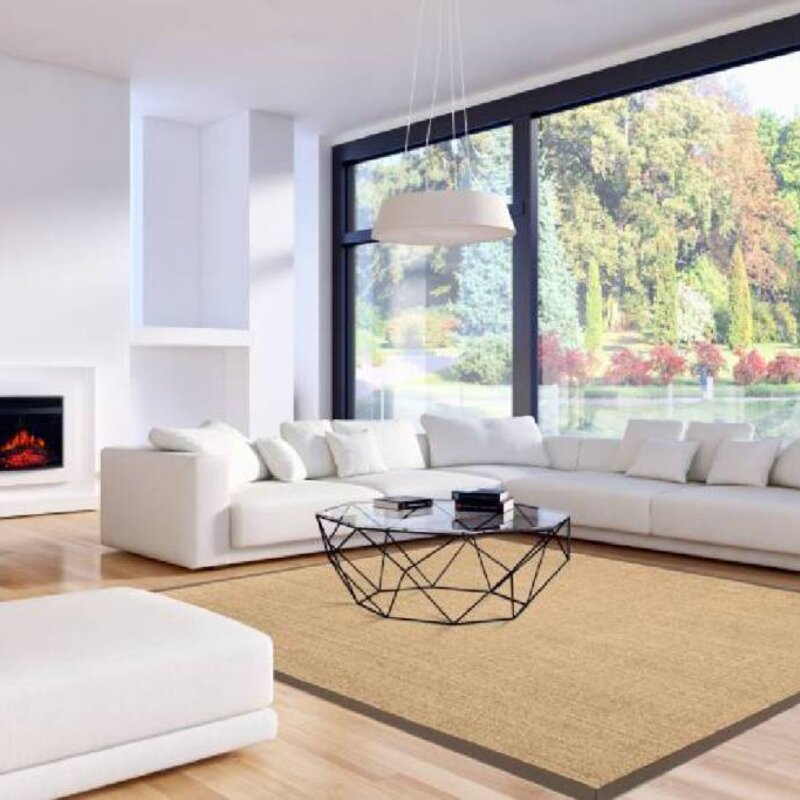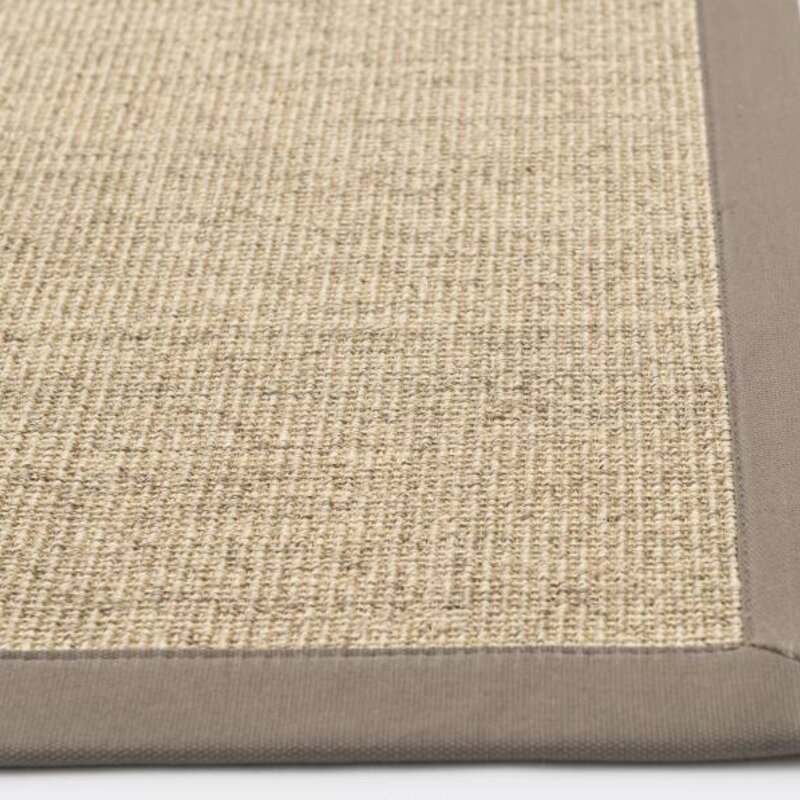 Dieser Sisal Teppich ist standardmäßig mit einer Bordüre aus Baumwolle gefertigt und ist in den Standardgrößen lagernd.