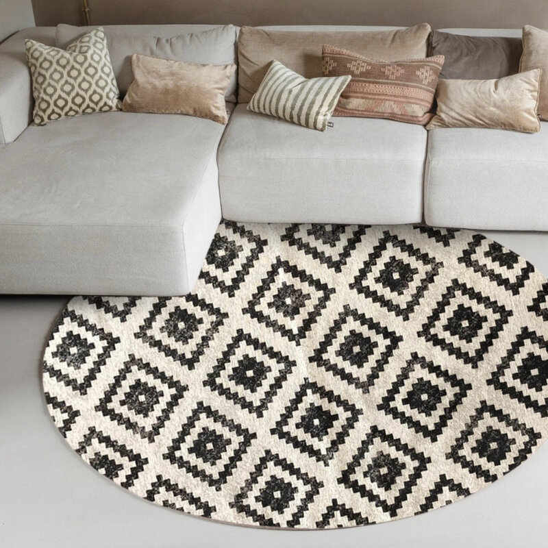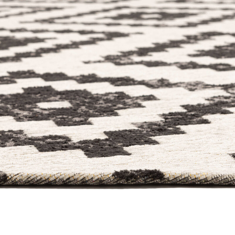 Holen Sie sich einen Hauch von Marokko mit diesem wunderschönen abstrakten Teppich mit schwarzem und weißem Motiv. Dieser Teppich ist aus einer Mischung aus natürlichen und synthetischen Materialien gefertigt. Die natürlichen Materialien sorgen für eine warme Ausstrahlung und die synthetischen verleihen dem Teppich zusätzliche Festigkeit, damit er lange hält und seine Farben behält. Der schwarz-weiße Teppich ist außerdem besonders fein gewebt, was ihm ein flacheres Aussehen verleiht und ihn besonders pflegeleicht macht.